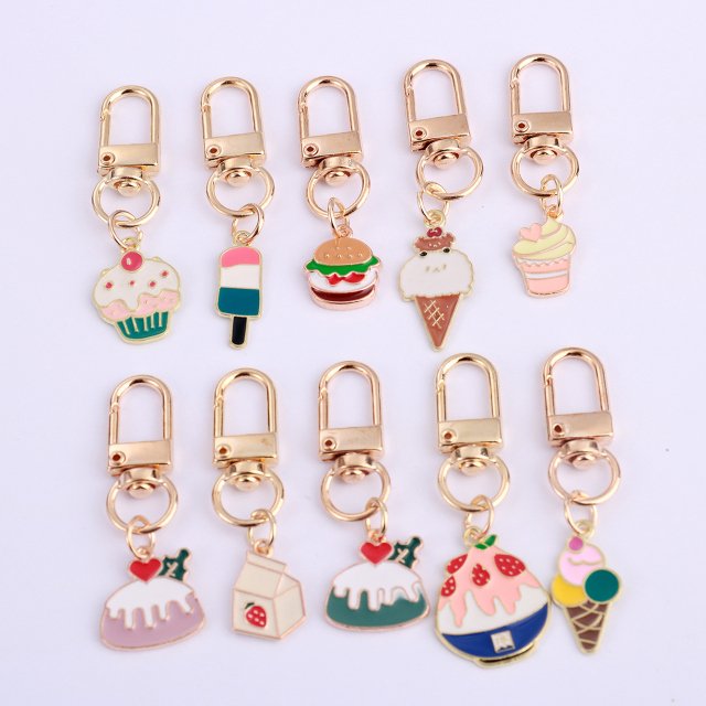 • Set of 10 cute cartoon ice cream keychains