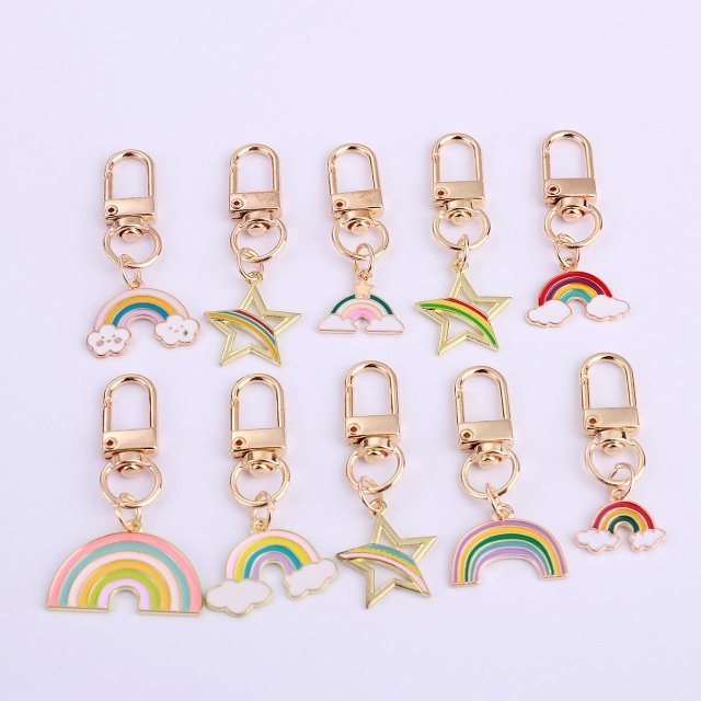 Bring a touch of color and sparkle to your everyday essentials with the 10pcs Rainbow Star Keychain Set. Designed for those who love to express their personality, these vibrant star-shaped metal keychains are the perfect blend of fashion and fun. Whether clipped onto your purse, backpack, or keys, they add a cheerful charm that never goes unnoticed. Each keychain features a classic split ring for easy attachment, made from durable zinc alloy with a sleek gold-color finish that enhances its stylish appeal.