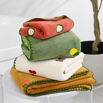 Soft Coral Velvet Embroidered Cartoon Bath Towel