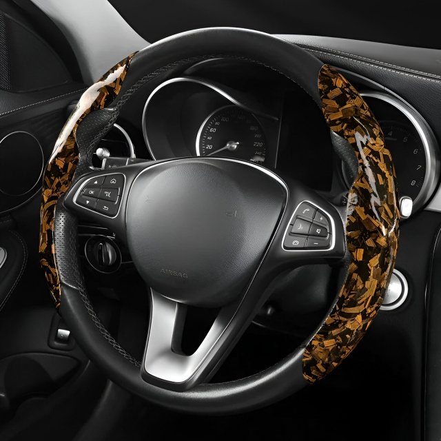 Upgrade your driving experience with this forged carbon textured steering wheel cover, designed to add a bold, modern look while improving control and comfort on the road. Its high-gloss decorative finish delivers a sporty, luxury-inspired appearance that instantly elevates your car’s interior. At the same time, the advanced anti-slip surface keeps your hands steady and secure, even during long drives or sharp turns.
