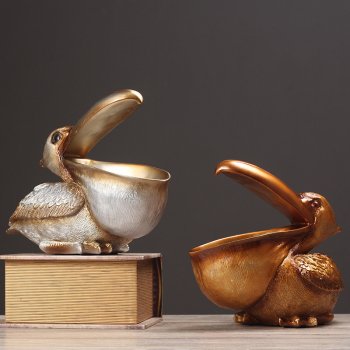 Elegant Pelican Resin Ornament for Home Decor & Storage